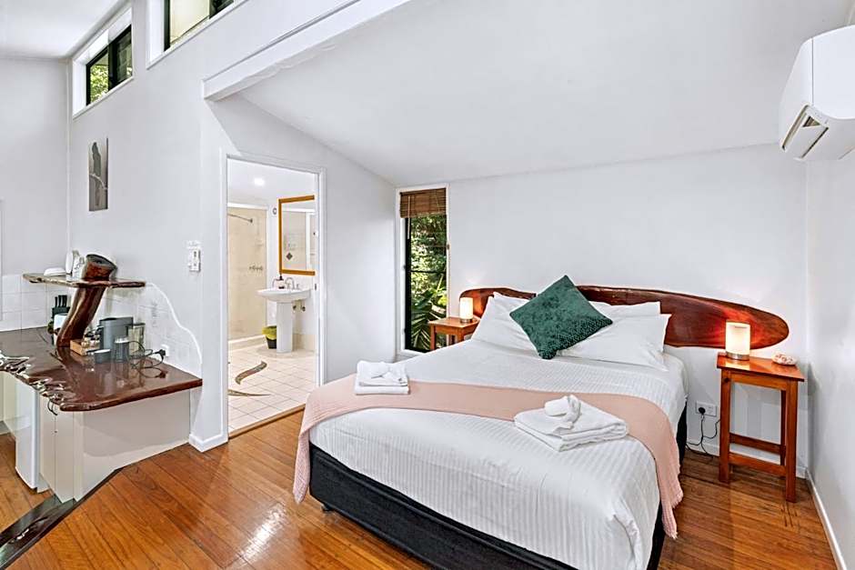 This private villa features a 2-person spa bath with rainforest views, as well as a fireplace, private veranda with BBQ, and fluffy bathrobes.